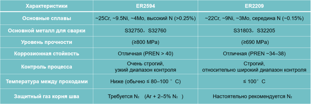 ER2594 — единственно правильный выбор для сварки супердуплексной нержавеющей стали. Его использование требует более высокого уровня сварочной технологии и более строгого контроля качества. Любое отклонение от параметров процесса может привести к серьёзно неприемлемому качеству сварки. Перед непосредственным применением необходимо провести комплексную аттестацию сварочной процедуры (WPS/PQR), а сварка должна выполняться под строгим контролем опытного сварщика.