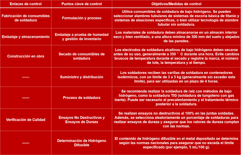 Para garantizar que las soldaduras alcancen niveles ultrabajos de hidrógeno (≤5 mL/100 g) o incluso extremadamente bajos (≤2 mL/100 g), la clave reside en establecer un sistema de control integral que abarque la fabricación, el embalaje, el almacenamiento y la construcción en obra del material de soldadura. Este sistema reduce eficazmente el riesgo de fisuras por enfriamiento inducidas por hidrógeno y garantiza la seguridad de la soldadura en estructuras de acero de alta resistencia.hidrógeno difuso