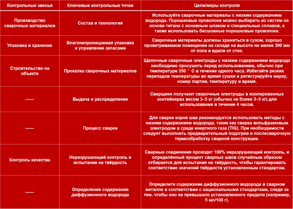 водород в сварном шве в основном поступает из влаги, содержащейся в покрытии/флюсе сварочного материала, влаги из воздуха и загрязнений маслом в процессе сварки. Поэтому основой всей системы является «предотвращение попадания влаги» и «удаление водорода». От высокотемпературной прокалки и герметичной упаковки сварочных материалов на заводе до повторной сушки перед использованием и сохранения тепла во время использования – каждый этап направлен на устранение источника водорода.