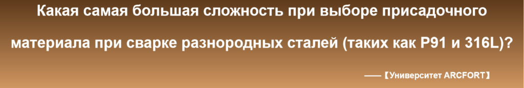 Самая большая проблема при сварке разнородных сталей P91 и 316L заключается в проектировании или выборе металла шва с химическим составом и физическими свойствами, который может выступать в качестве «буферной зоны и зоны изоляции», одновременно решая четыре основные проблемы: миграцию углерода, образование вредных фаз, значительные термические напряжения и противоречивые требования к послесварочной термообработке.