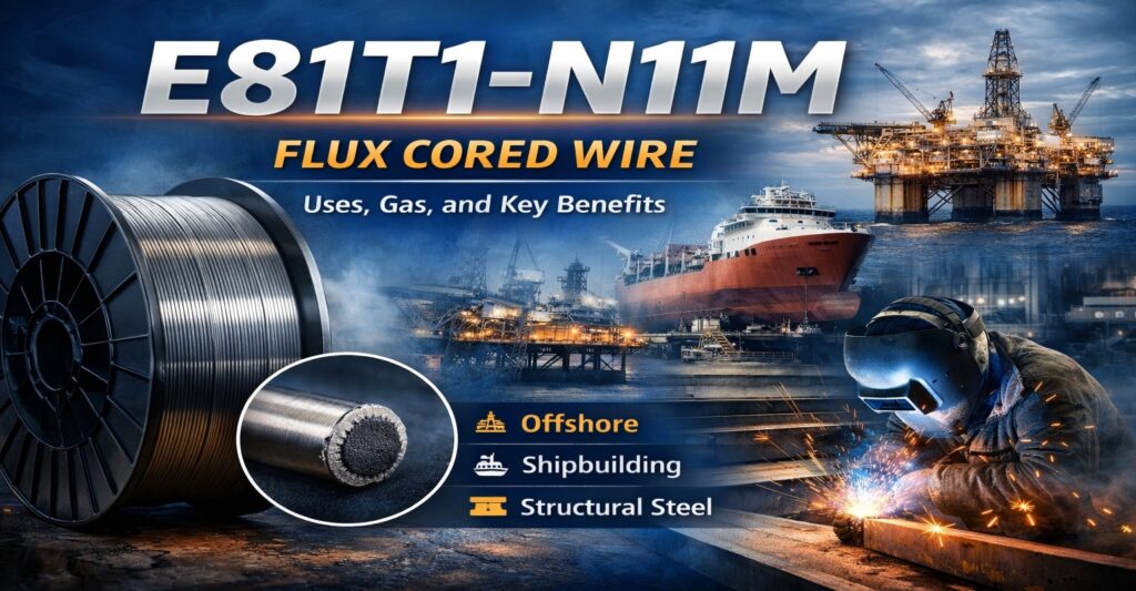 In this guide, we explain what E81T1-Ni1M means, where it is used, which shielding gas it requires, and why many fabricators choose it for high-strength and low-temperature applications.