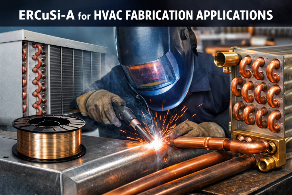 Copper and copper alloys are widely used in HVAC and heat-exchanger systems because they offer high thermal conductivity, good corrosion resistance, and practical manufacturability in heating and cooling equipment. At the same time, ERCuSi-A is classified under AWS A5.7 as a silicon-bronze filler metal used for welding and brazing applications involving copper alloys, light-gauge steel, galvanized steel, and some corrosion-resistant surfacing work.