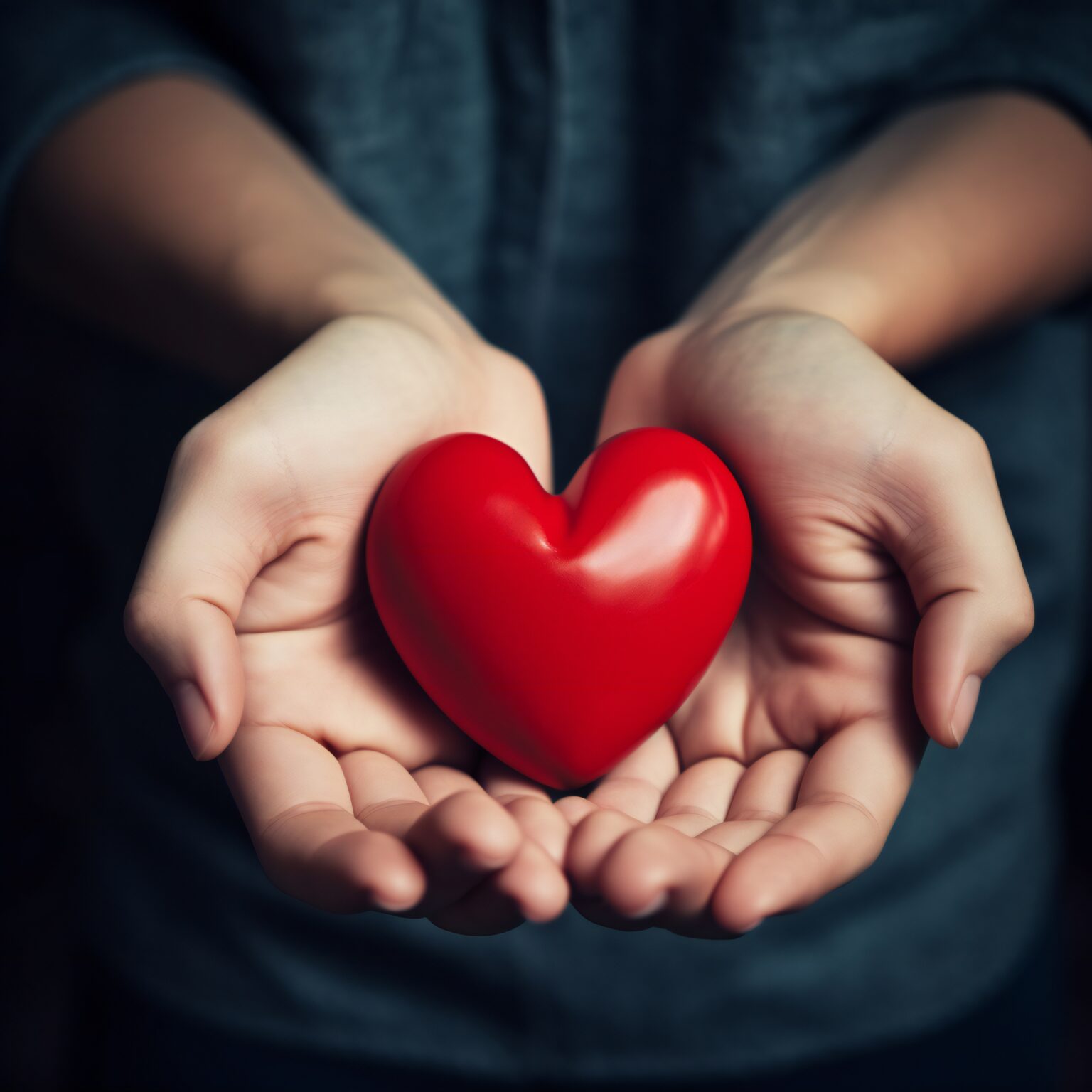Published January 4, 2024 at 4096 × 4096 in Teen boy hands holding red heart, heart health insurance,social responsibility generative ai